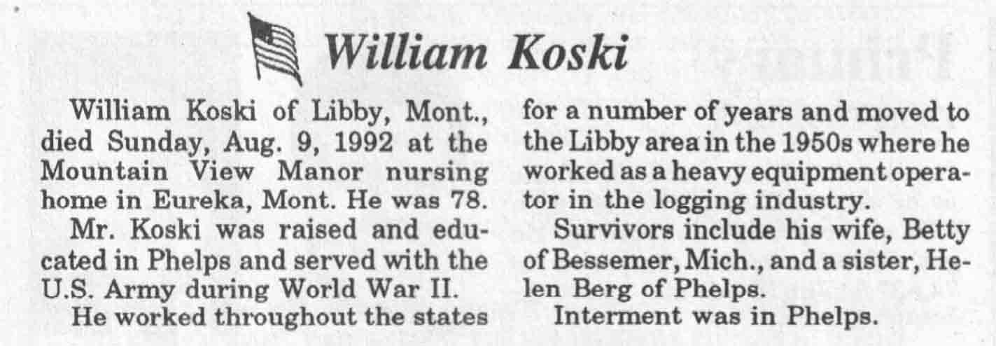 | Alinen | Waino A | 20 Feb 1915 | 25 Nov 1992 | V N-R | 02 Dec 1992 | 4 |