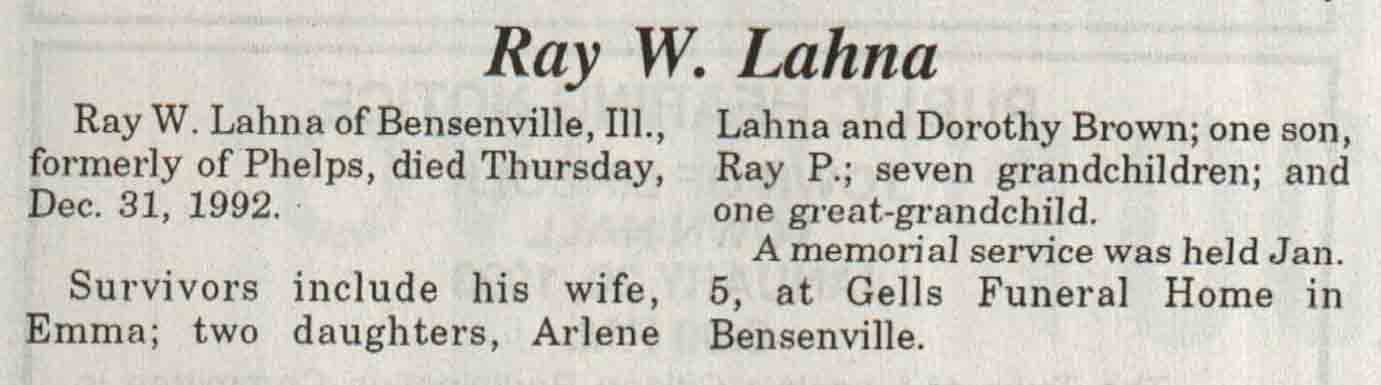 | Dotson | Charles W #1 | c 1905 | 30 Mar 1992 | V N-R | 01 Apr 1992 | 4 |