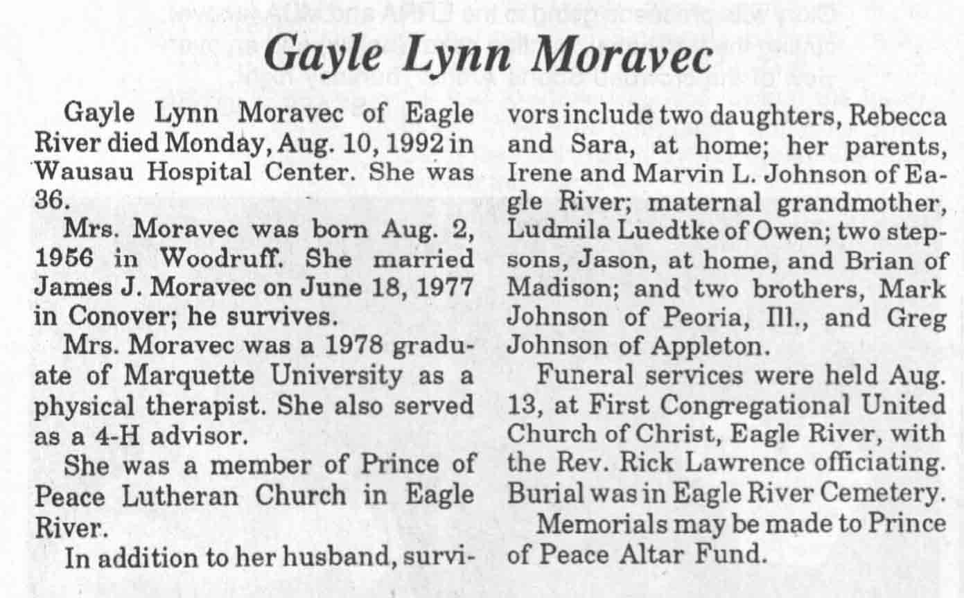 | Moravec | Gayle Lynn #2 | 02 Aug 1956 | 10 Aug 1992 | V N-R | 19 Aug 1992 | 4 |