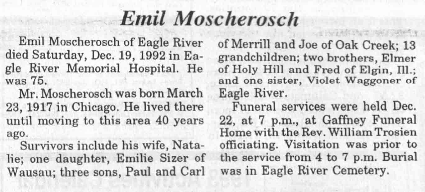 | Moscherosch | Emil | 23 Mar 1917 | 19 Dec 1992 | V N-R | 23 Dec 1992 | 4 |