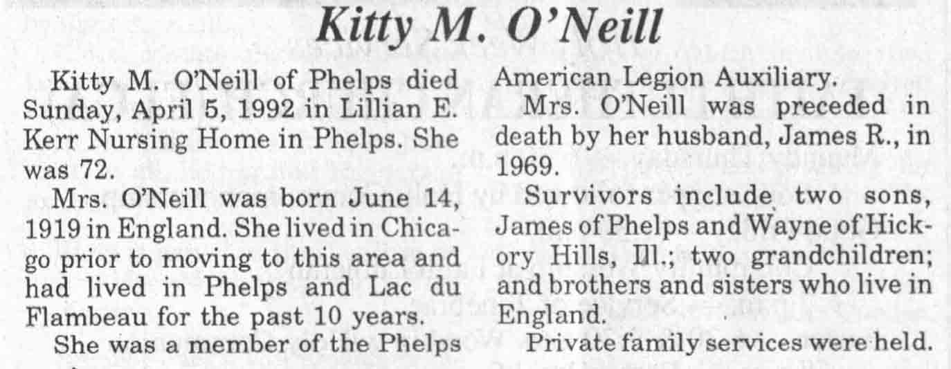 | O'Neill | Kitty M | 14 Jun 1919 | 05 Apr 1992 | V N-R | 15 Apr 1992 | 4 |