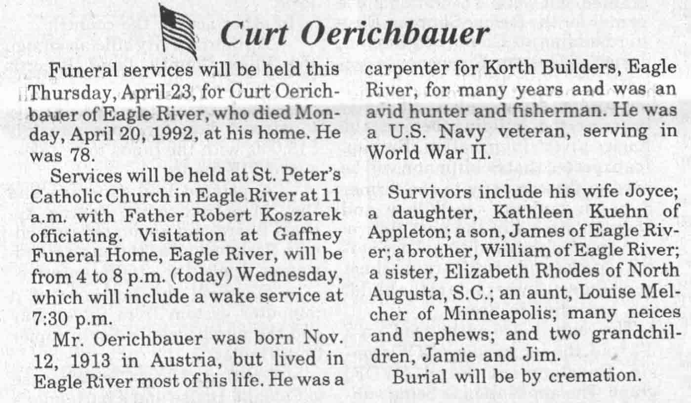 | Oerichbauer | Curt | 12 Nov 1913 | 20 Apr 1992 | V N-R | 22 Apr 1992 | 4 |