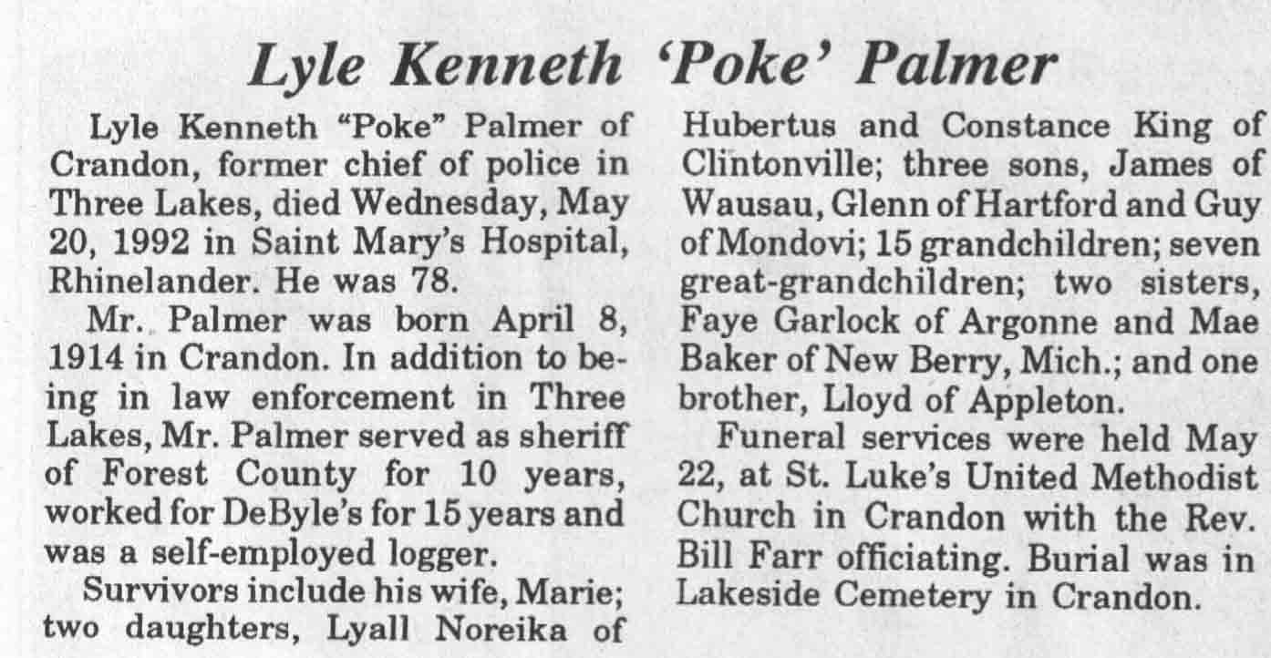 | Palmer | Lyle Kenneth 'Poke' | 08 Apr 1914 | 20 May 1992 | V N-R | 27 May 1992 | 4 |
