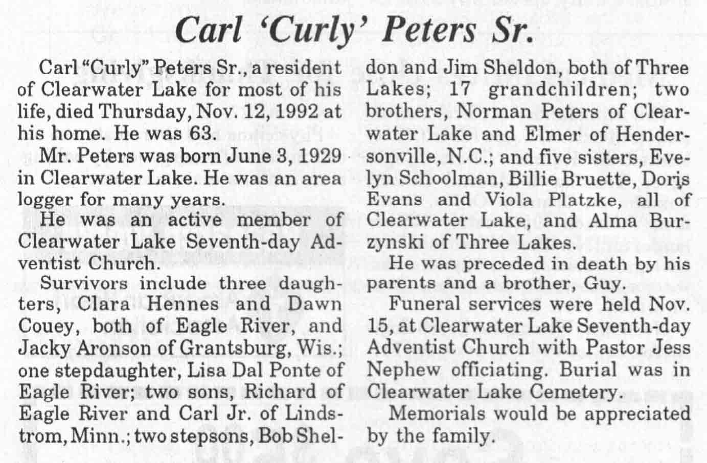 | Peters | Carl 'Curly', Sr | 03 Jun 1929 | 12 Nov 1992 | V N-R | 18 Nov 1992 | 4 |