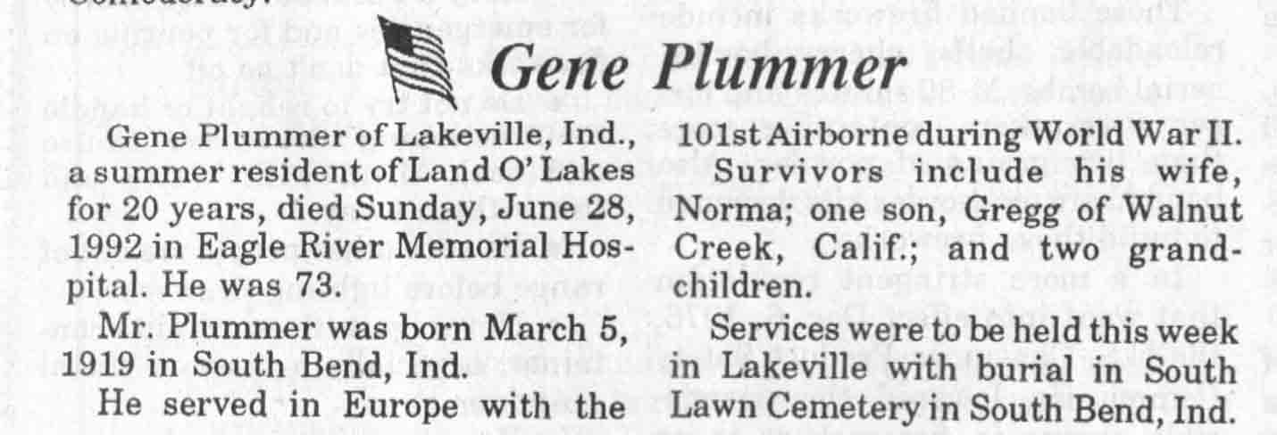 | Plummer | Gene | 05 Mar 1919 | 28 Jun 1992 | V N-R | 01 Jul 1992 | 4 |