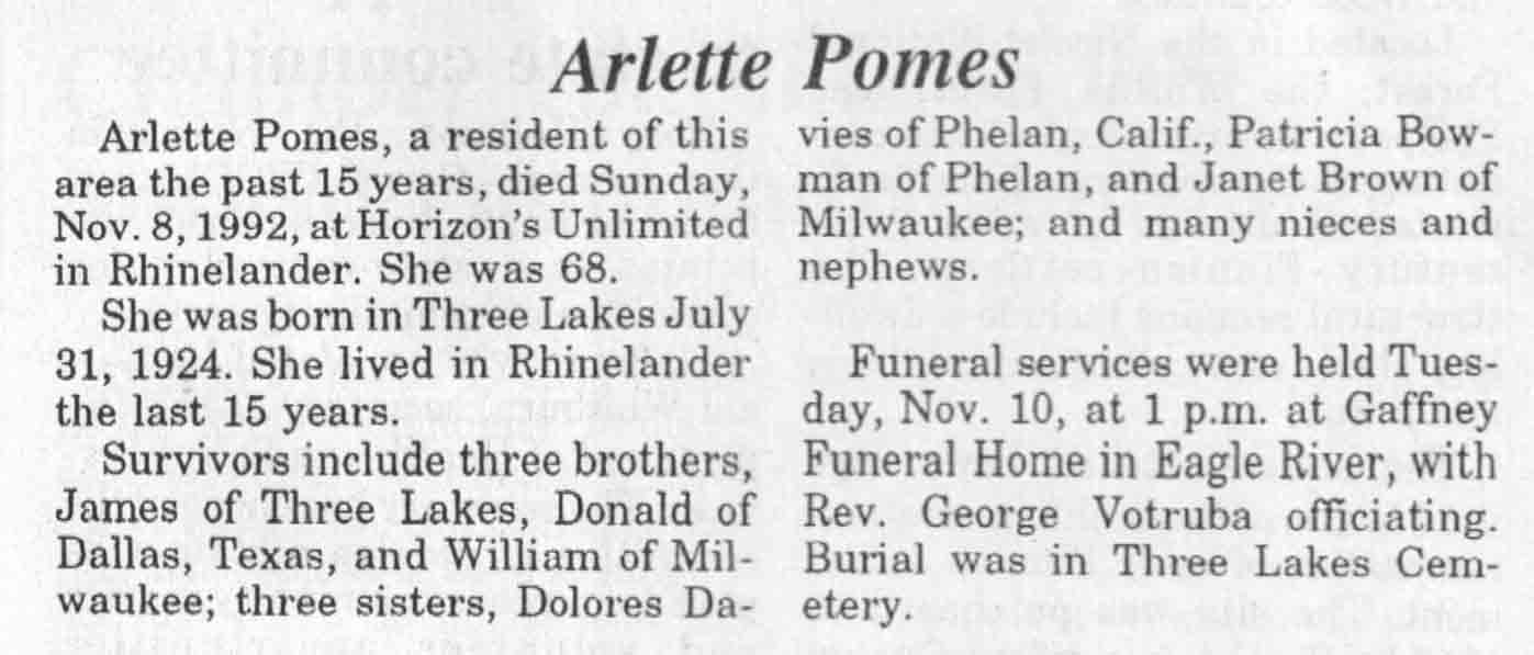 | Pomes | Arlette | 31 Jul 1924 | 08 Nov 1992 | V N-R | 11 Nov 1992 | 4 |