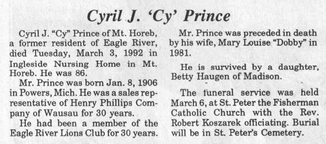 | Prince | Cyril J 'Cy' | 08 Jan 1906 | 03 Mar 1992 | V N-R | 11 Mar 1992 | 4 |