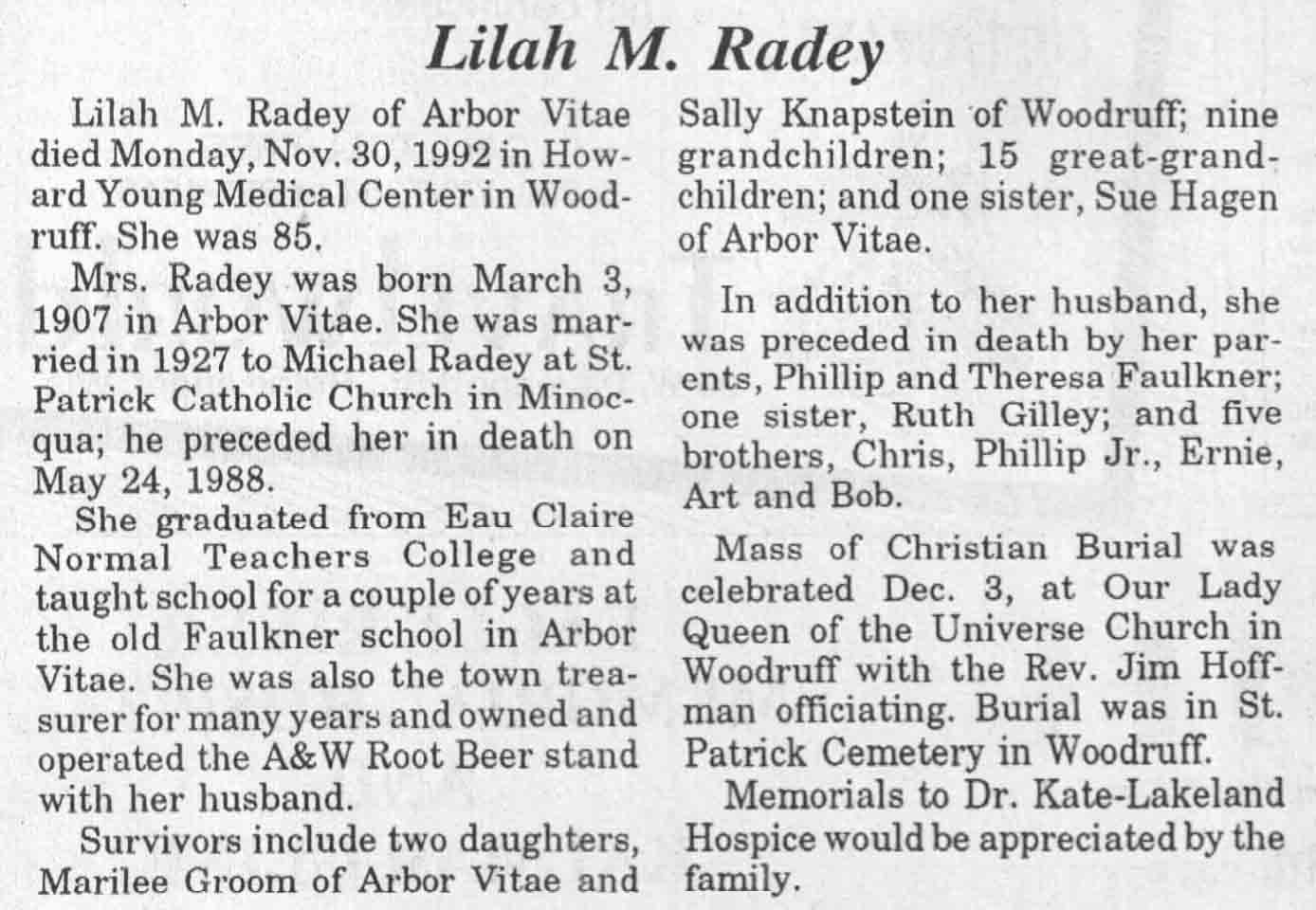 | Radey | Lilah M | 03 Mar 1907 | 30 Nov 1992 | V N-R | 09 Dec 1992 | 4 |