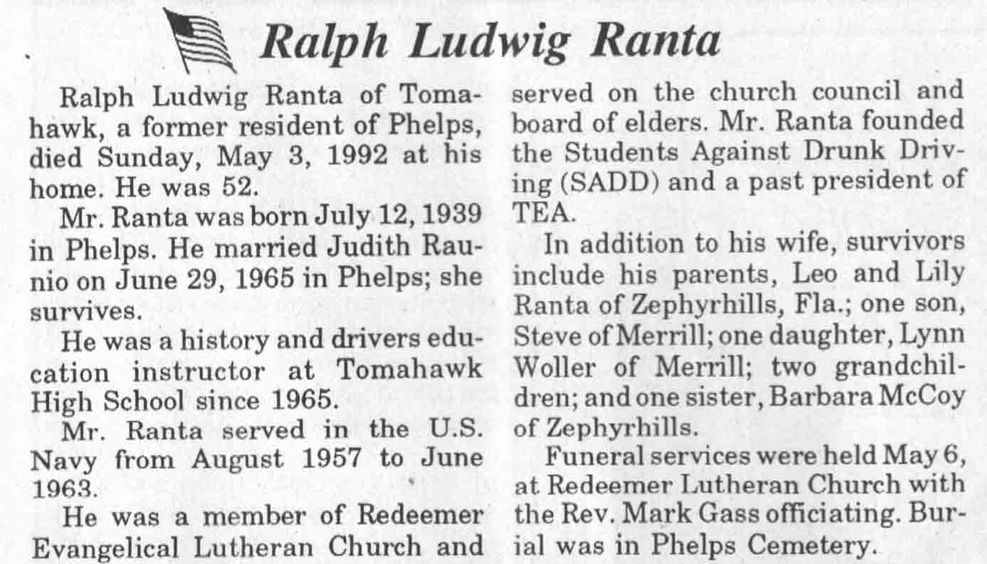 | Ranta | Ralph Ludwig | 12 Jul 1939 | 03 May 1992 | V N-R | 13 May 1992 | 4 |