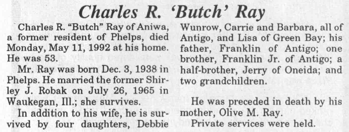 | Ray | Charles R 'Butch' | 03 Dec 1938 | 11 May 1992 | V N-R | 20 May 1992 | 4 |