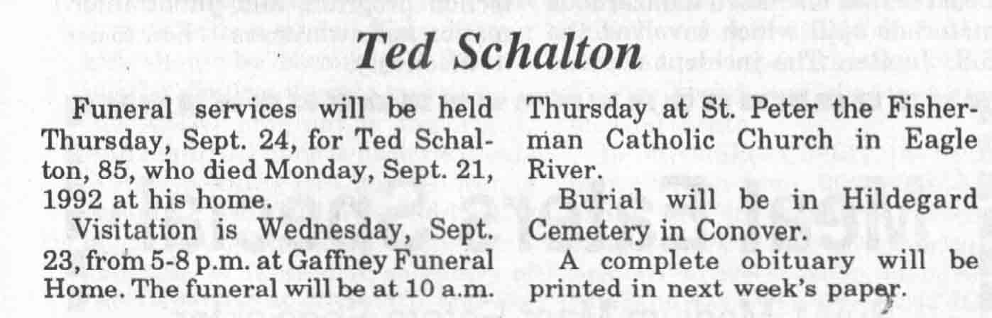 | Schalton | Ted #1 | c 1907 | 21 Sep 1992 | V N-R | 23 Sep 1992 | 4 |