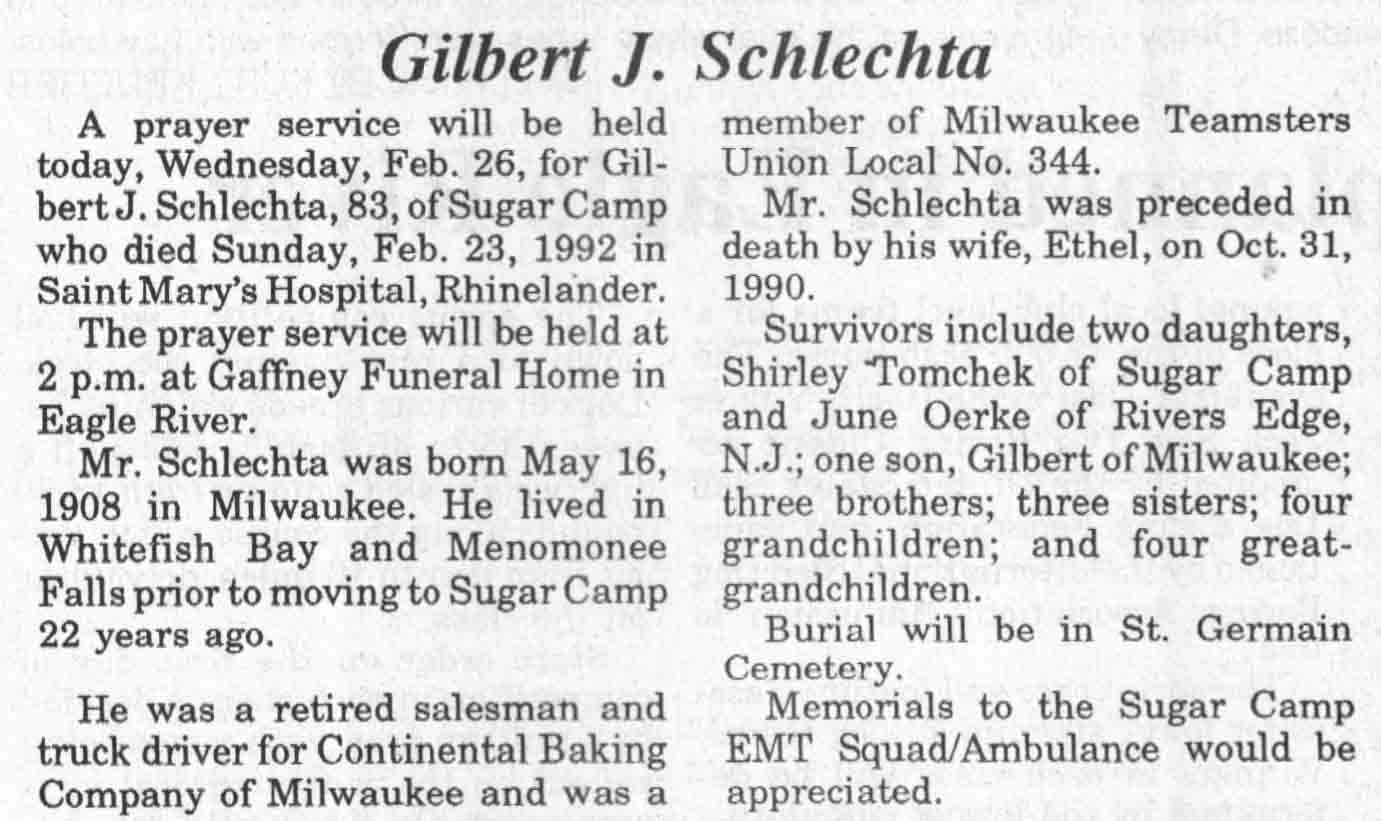 | Schlechta | Gilbert J | 16 May 1908 | 23 Feb 1992 | V N-R | 26 Feb 1992 | 4 |