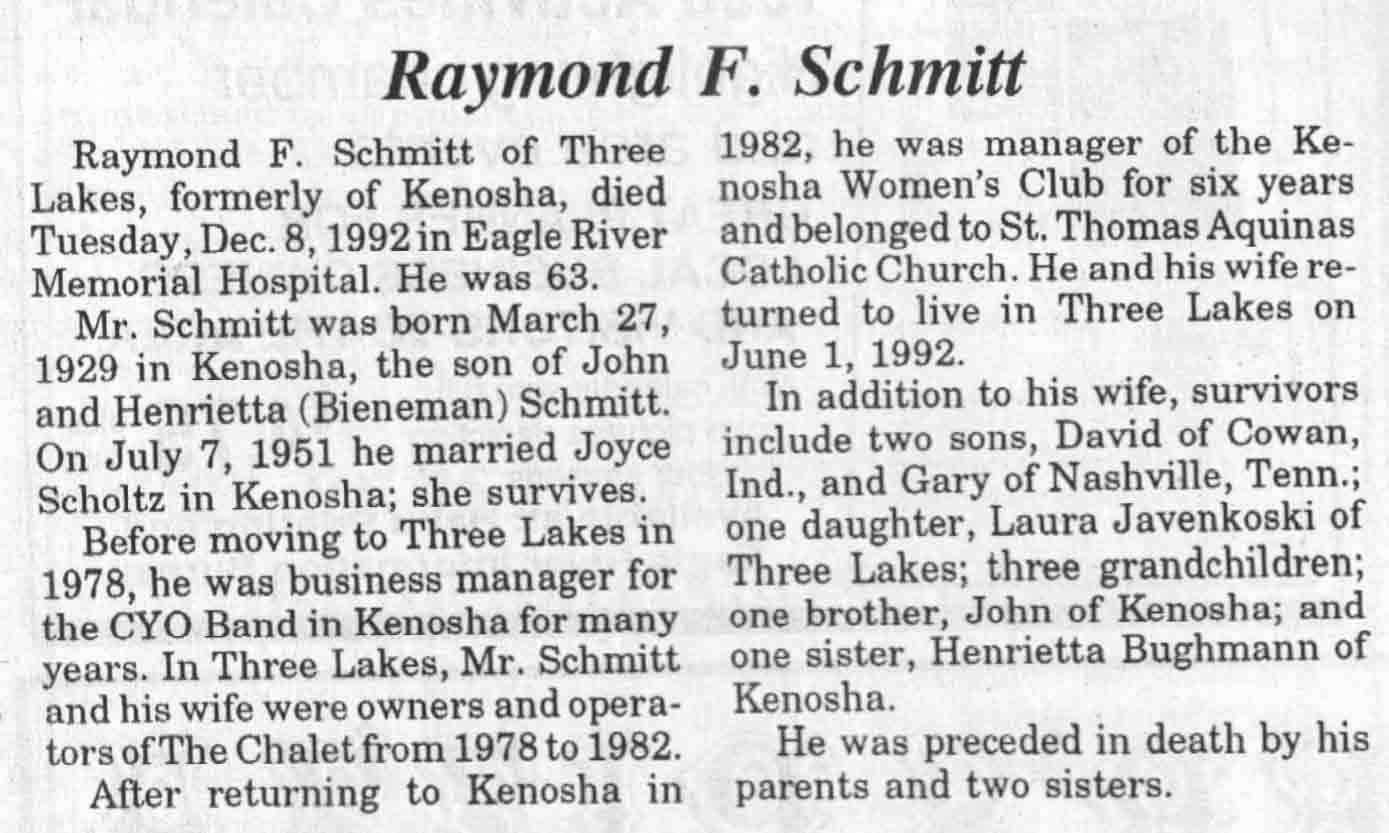 | Schmitt | Raymond F | 27 Mar 1929 | 08 Dec 1992 | V N-R | 23 Dec 1992 | 4 |