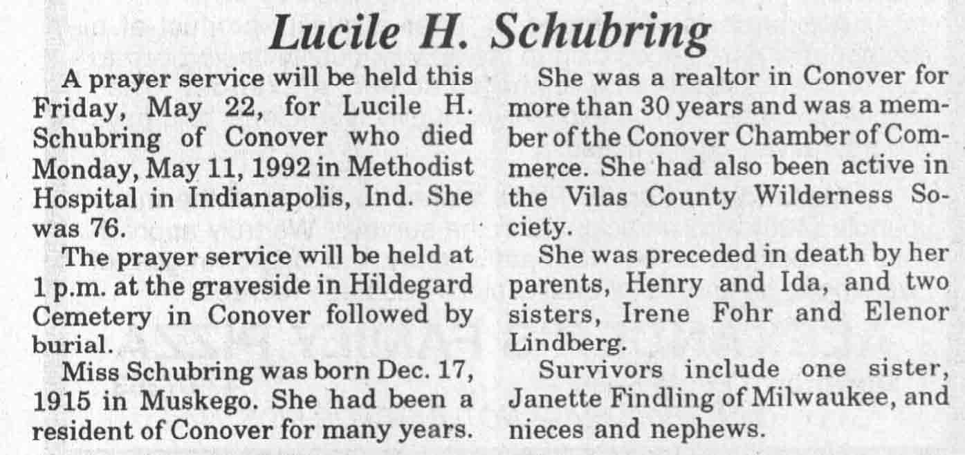 | Schubring | Lucile H | 17 Dec 1915 | 11 May 1992 | V N-R | 20 May 1992 | 4 |