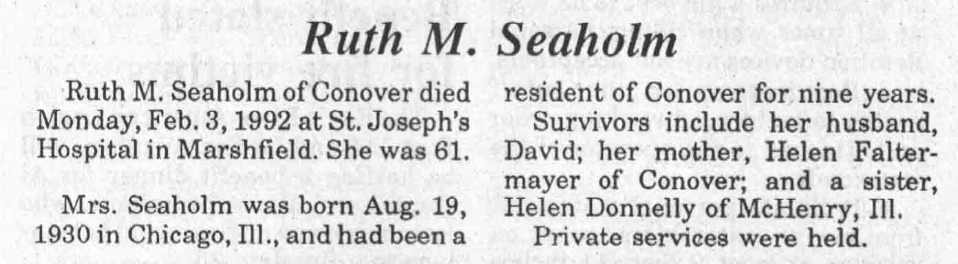 | Seaholm | Ruth M | 19 Aug 1930 | 03 Feb 1992 | V N-R | 05 Feb 1992 | 4 |