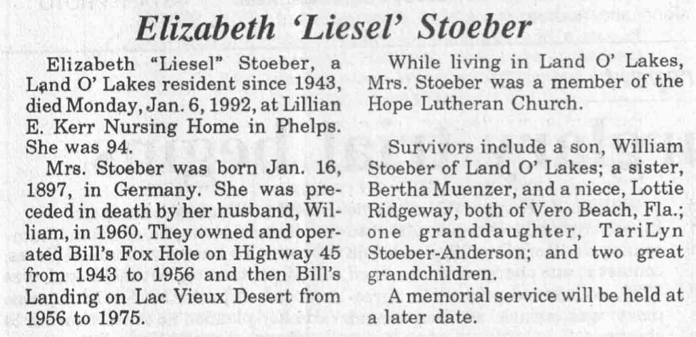 | Stoeber | Elizabeth 'Liesel' | 16 Jan 1897 | 06 Jan 1992 | V N-R | 08 Jan 1992 | 4 |
