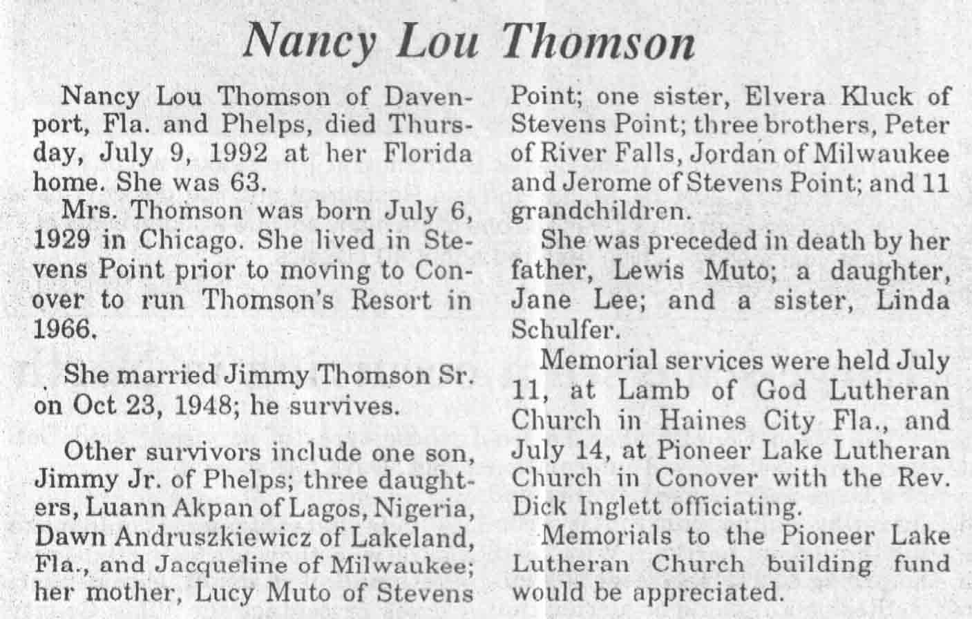 | Thomson | Nancy Lou | 06 Jul 1929 | 09 Jul 1992 | V N-R | 15 Jul 1992 | 4 |