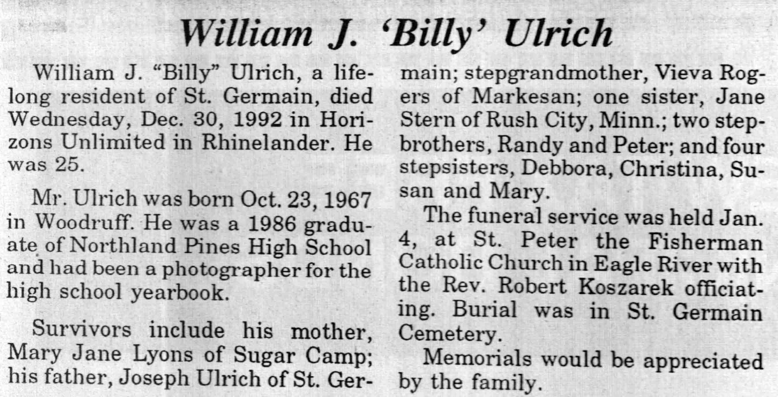 | Ulrich | William J 'Billy' | 23 Oct 1967 | 30 Dec 1992 | V N-R | 06 Jan 1993 | 4 |