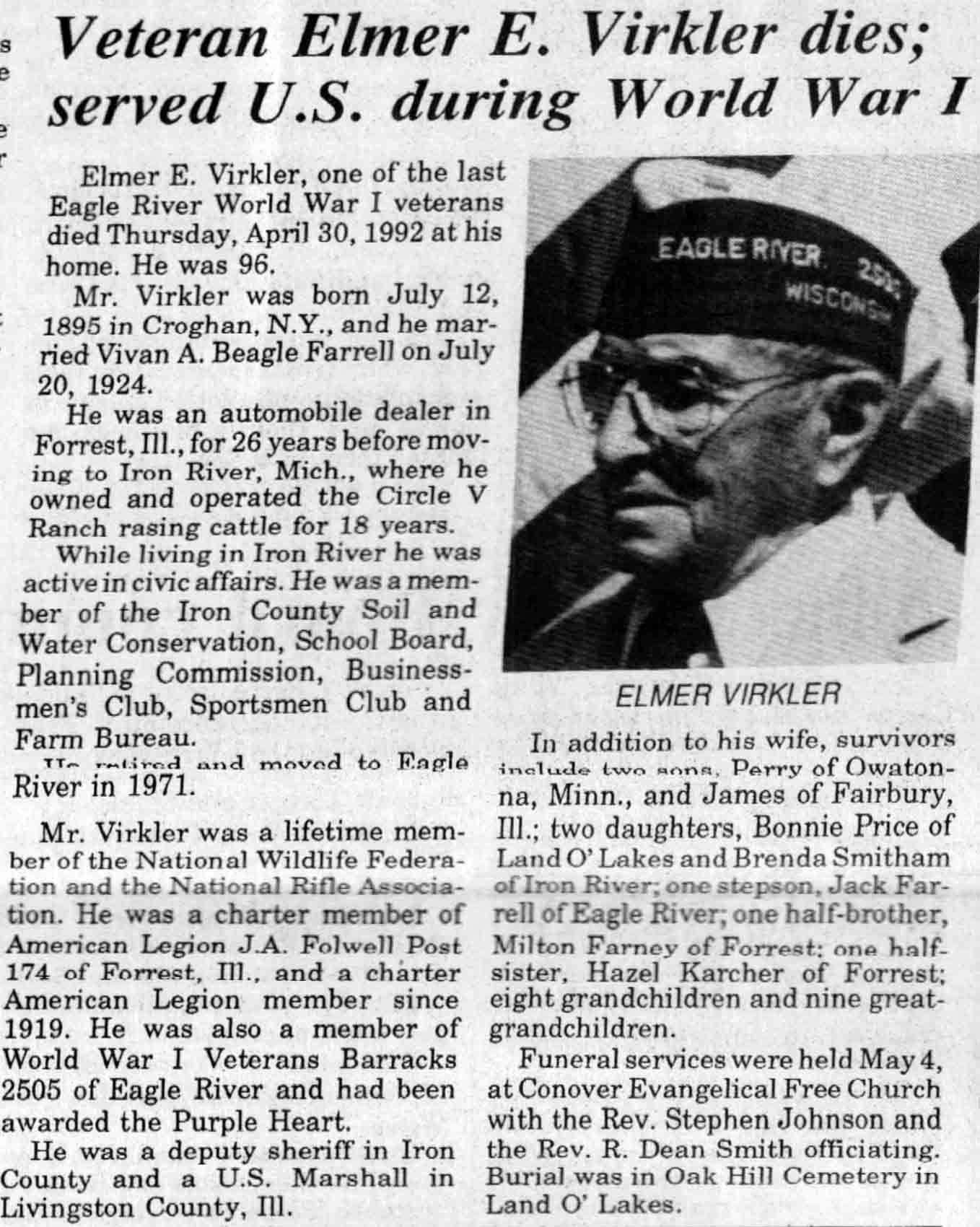 | Virkler | Elmer E | 12 Jul 1895 | 30 Apr 1992 | V N-R | 06 May 1992 | 4 |