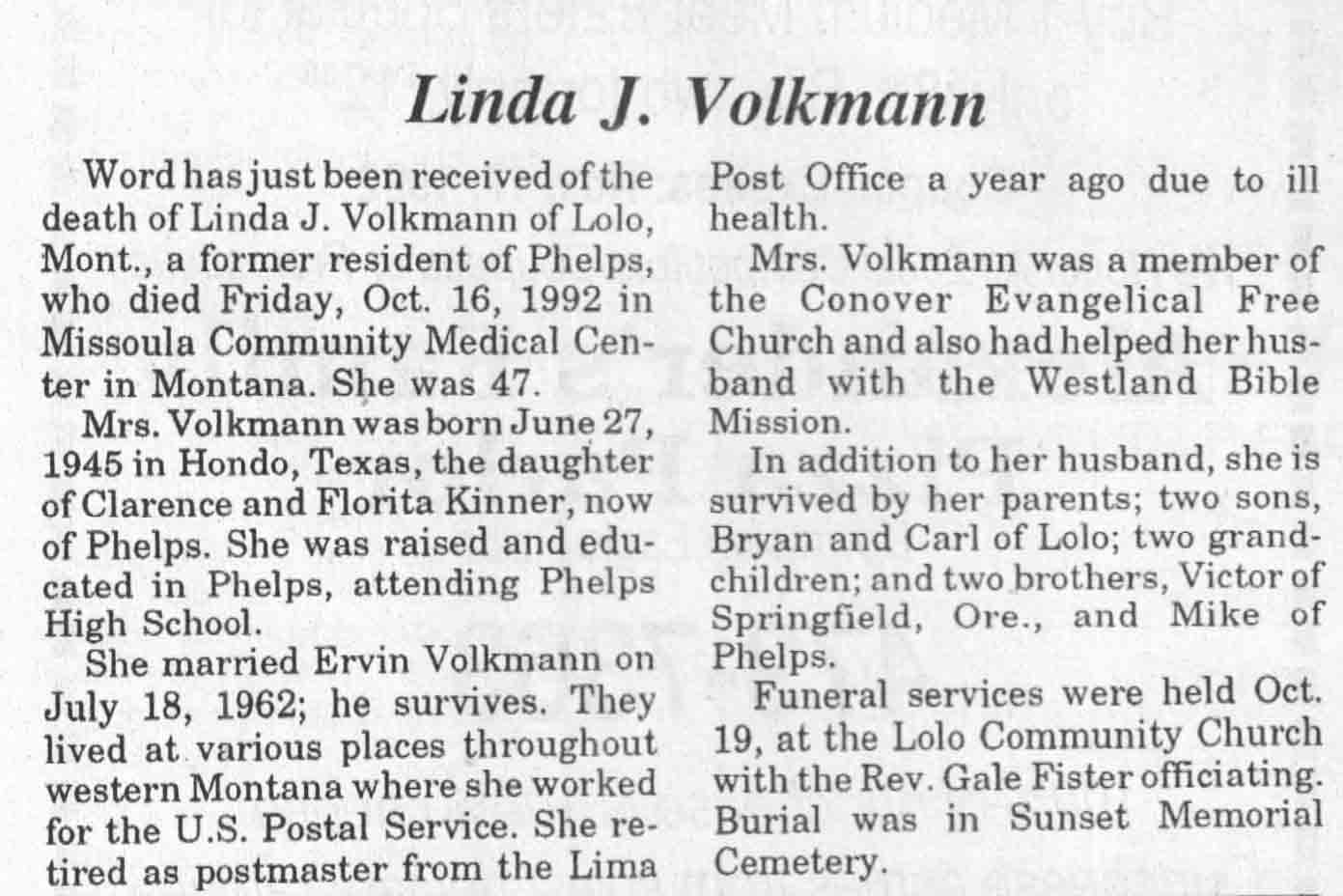 | Volkmann | Linda J | 27 Jun 1945 | 16 Oct 1992 | V N-R | 11 Nov 1992 | 4 |