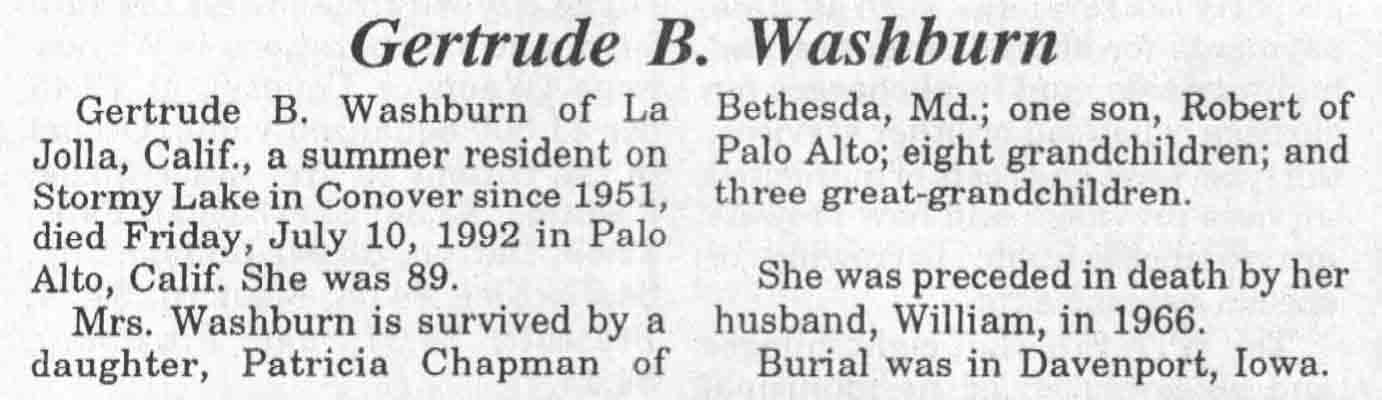 | Washburn | Gertrude B | c 1903 | 10 Jul 1992 | V N-R | 05 Aug 1992 | 4 |