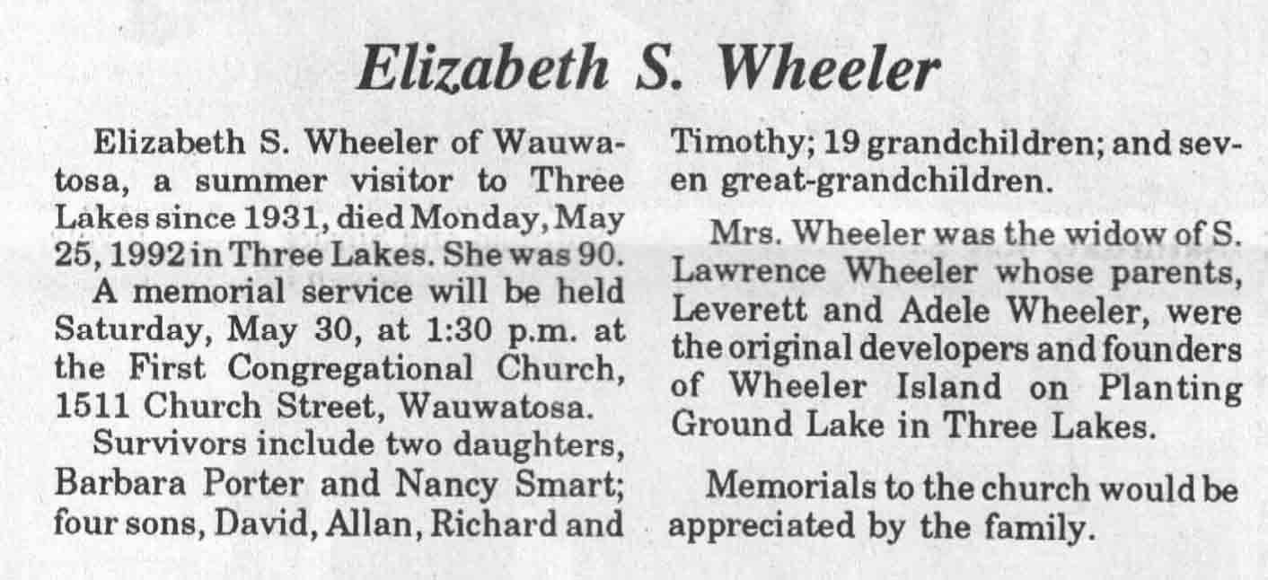 | Wheeler | Elizabeth S | c 1902 | 25 May 1992 | V N-R | 27 May 1992 | 4 |