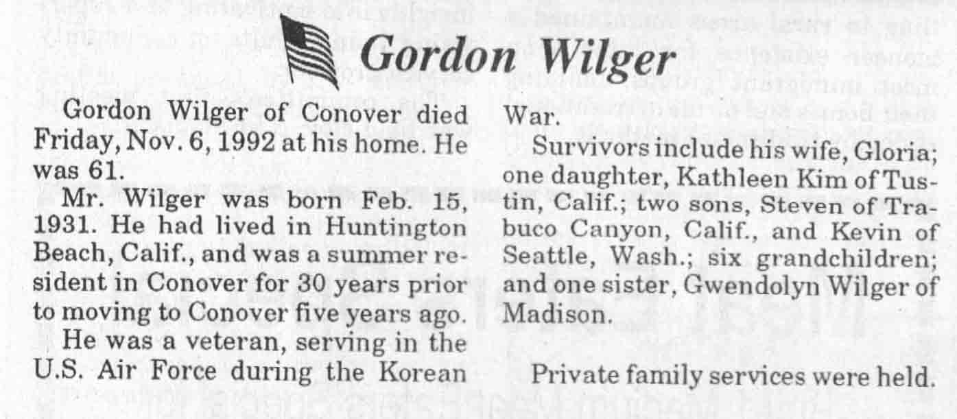 | Wilger | Gordon | 15 Feb 1931 | 06 Nov 1992 | V N-R | 11 Nov 1992 | 4 |