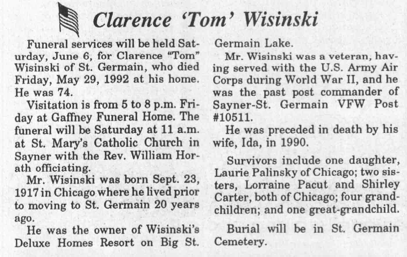 | Wisinski | Clarence 'Tom' | 23 Sep 1917 | 29 May 1992 | V N-R | 03 Jun 1992 | 4 |