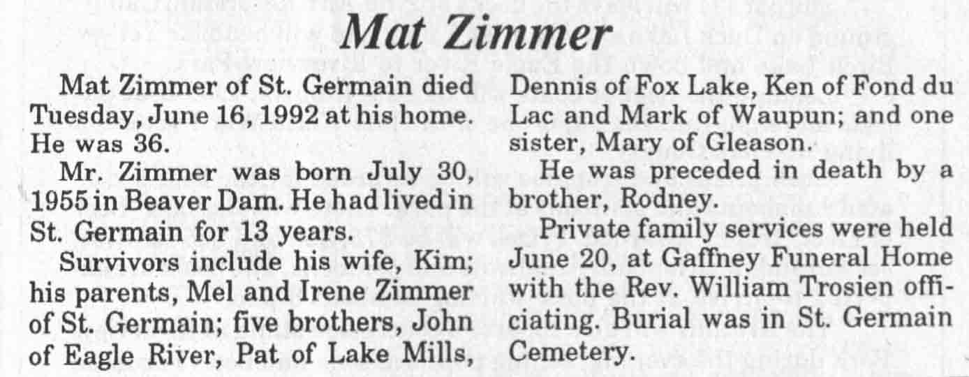 | Zimmer | Mat | 30 Jul 1955 | 16 Jun 1992 | V N-R | 24 Jun 1992 | 4 |