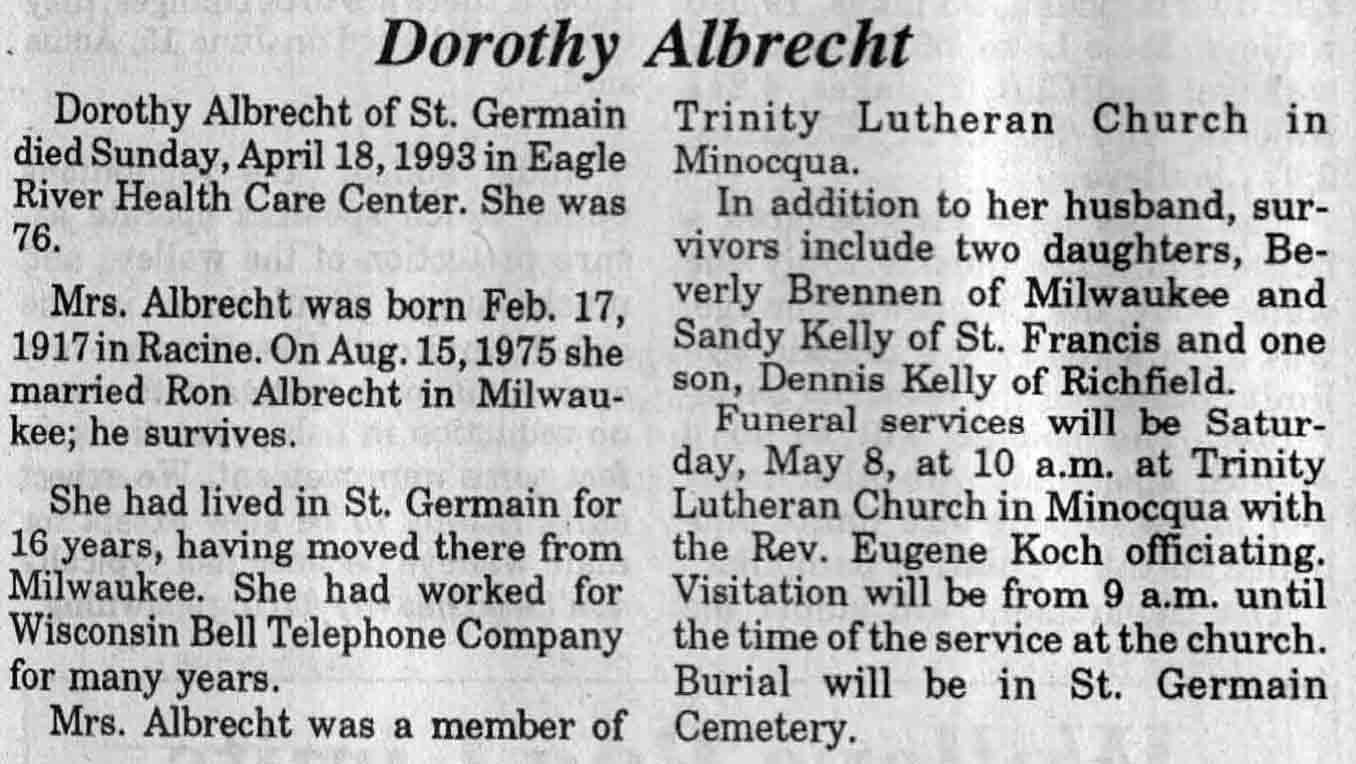 | Albrecht | Dorothy | 17 Feb 1917 | 18 Apr 1993 | V N-R | 28 Apr 1993 | 4 |