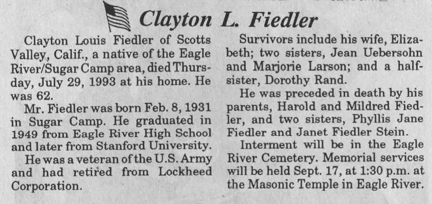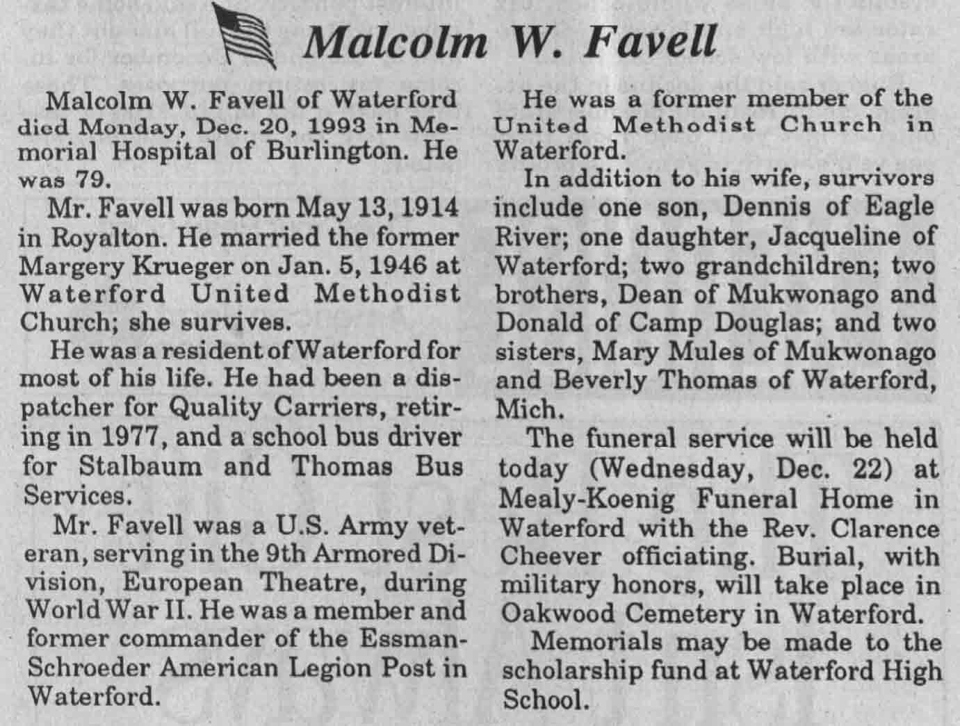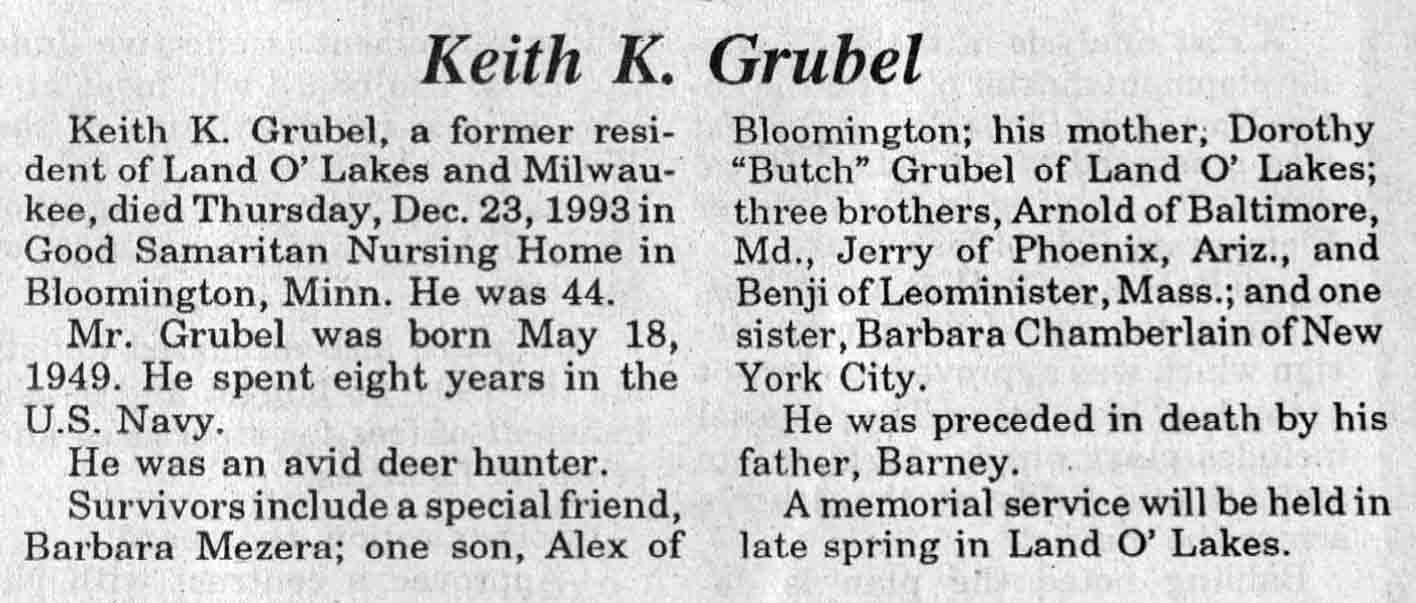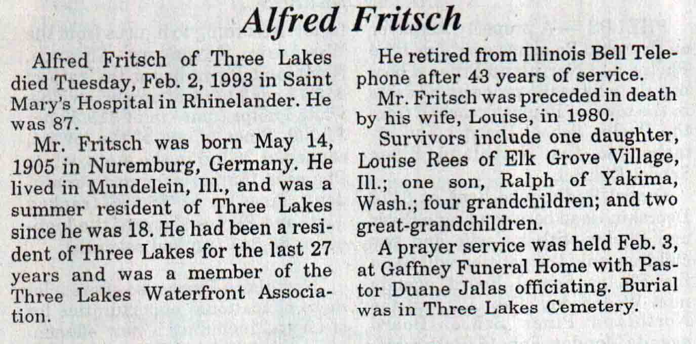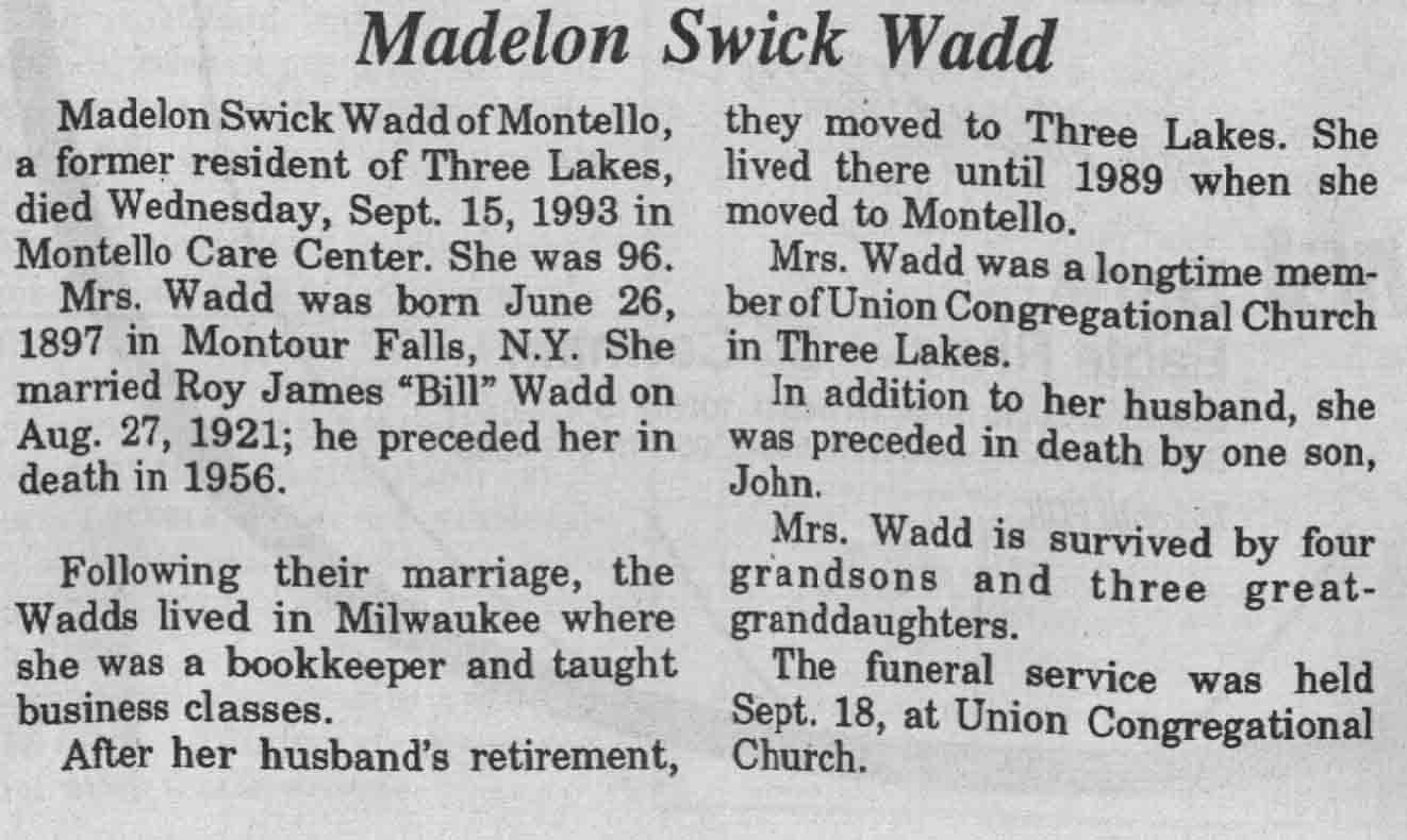 | Wachs | Harold F | c 1911 | 03 Nov 1993 | V N-R | 10 Nov 1993 | 4 |