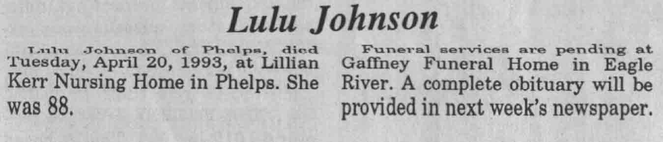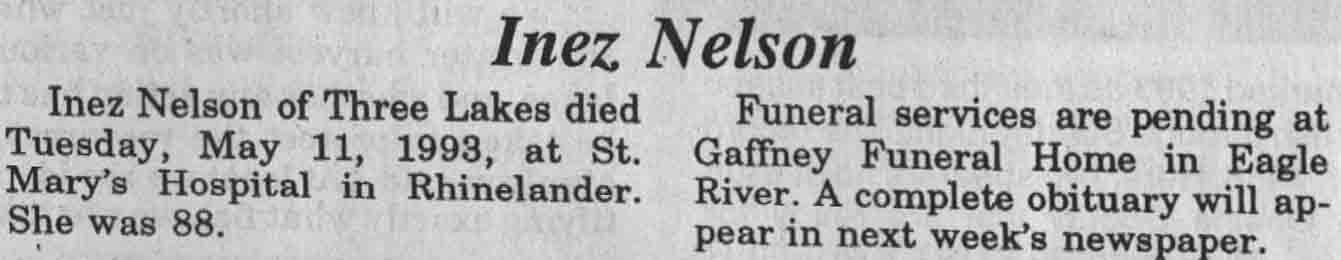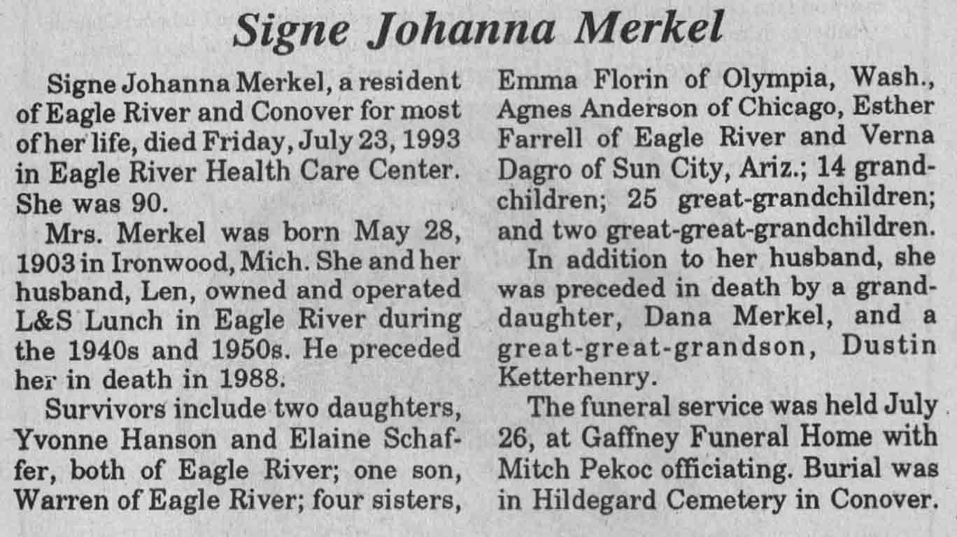 | Alinen | Vieno 'Vi' | 03 Jul 1911 | 07 Apr 1993 | V N-R | 14 Apr 1993 | 4 |