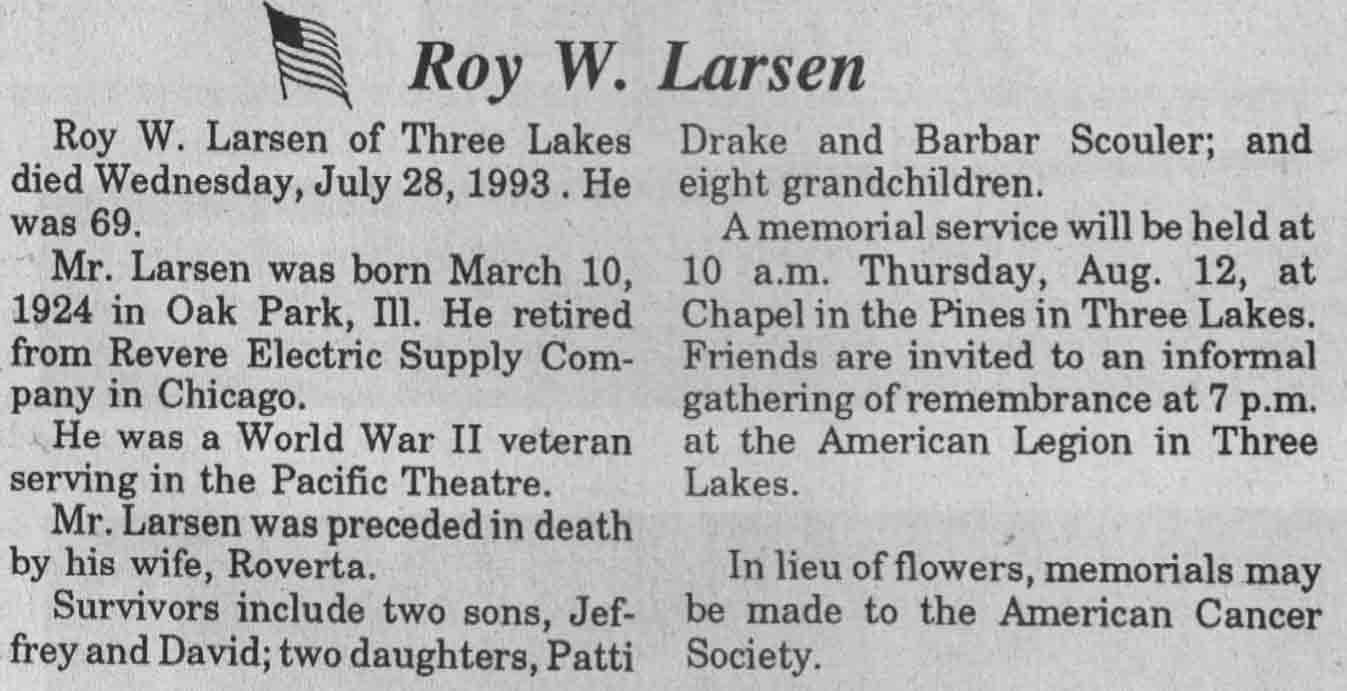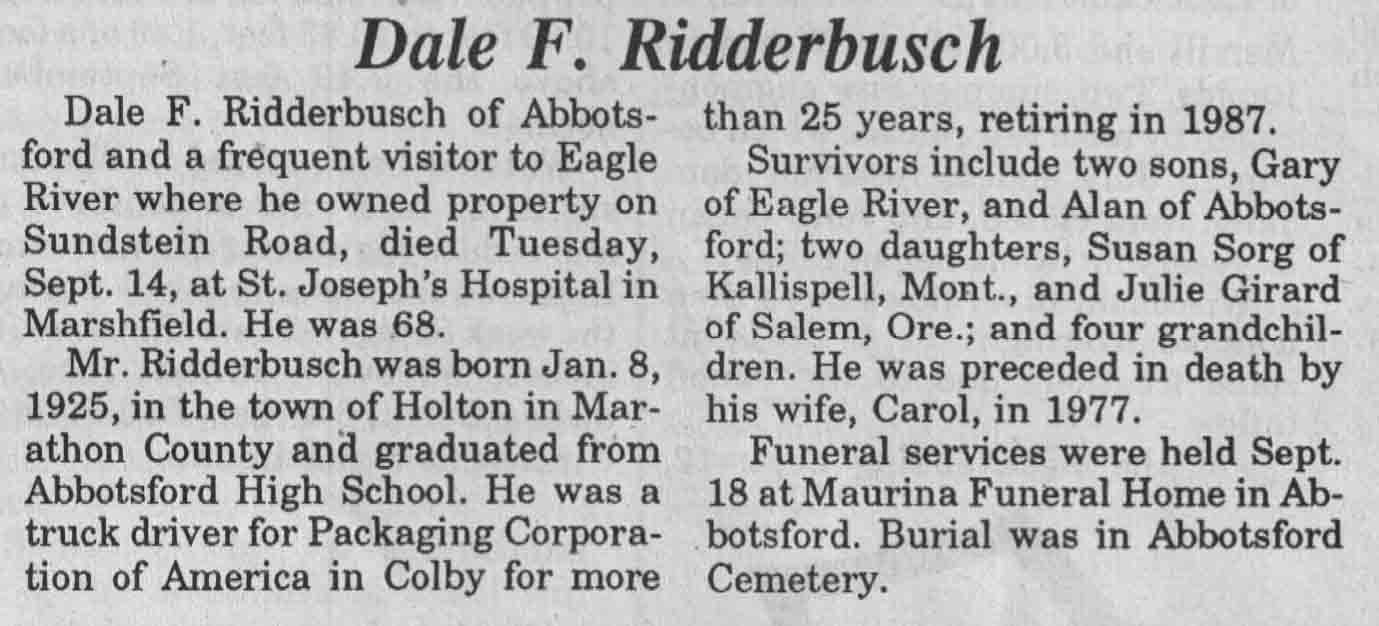 | Ridderbusch | Dale F | 08 Jan 1925 | 14 Sep 1993 | V N-R | 22 Sep 1993 | 4 |