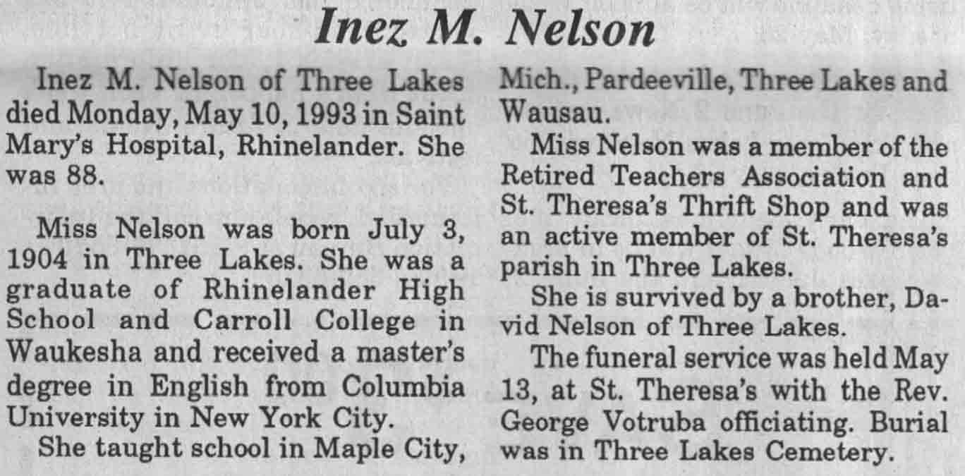 | Weckmueller | Ruth J | c 1914 | 24 Sep 1993 | V N-R | 29 Sep 1993 | 4 |
