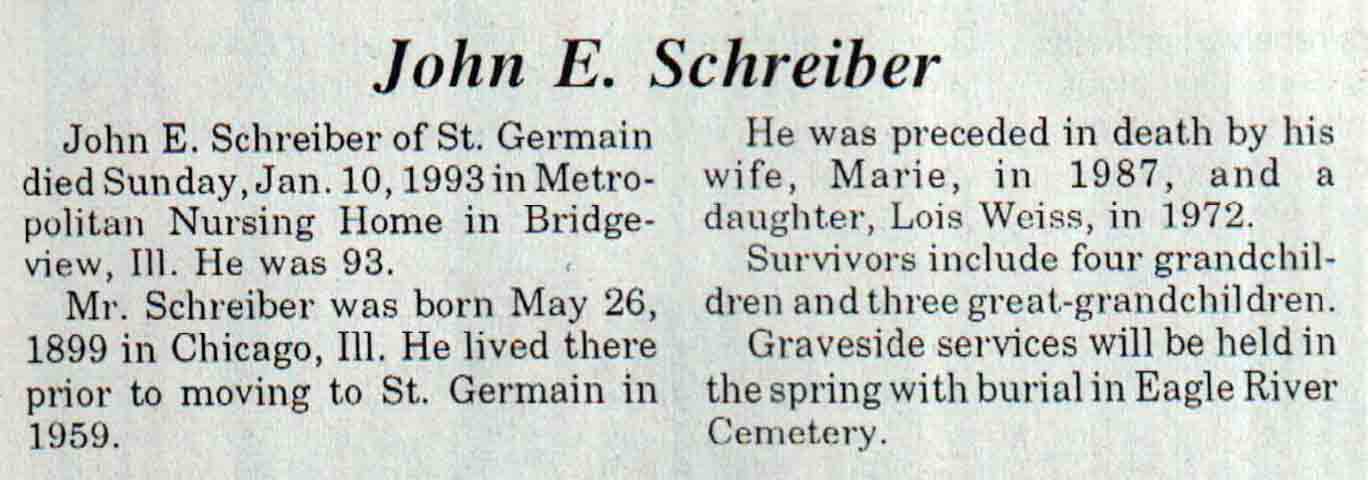 | Schreiber | John E | 26 May 1899 | 10 Jan 1993 | V N-R | 20 Jan 1993 | 4 |