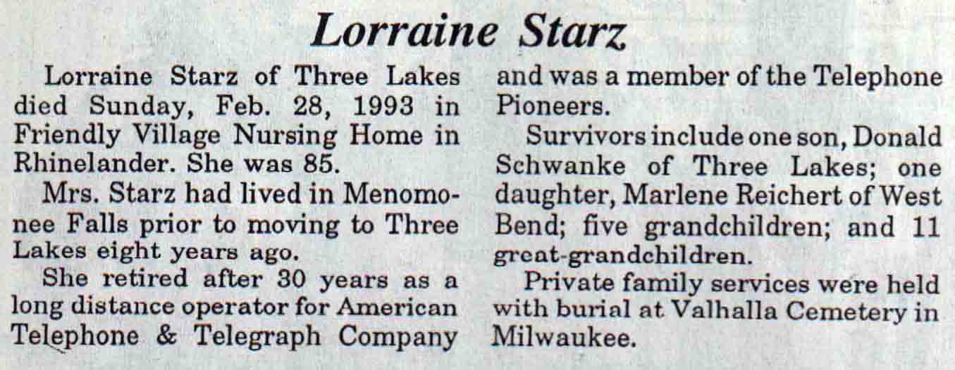 | Starz | Lorraine | c 1908 | 28 Feb 1993 | V N-R | 03 Mar 1993 | 4 |