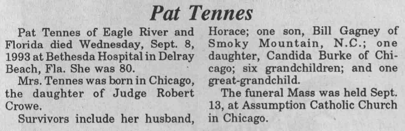 | Tennes | Patricia C (Crowe) #2 | c 1913 | 08 Sep 1993 | V N-R | 22 Sep 1993 | 4 |
