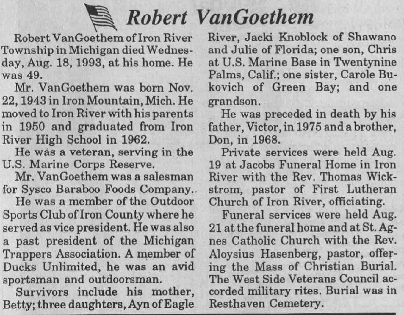 | VanGoethem | Robert | 22 Nov 1943 | 18 Aug 1993 | V N-R | 15 Sep 1993 | 4 |