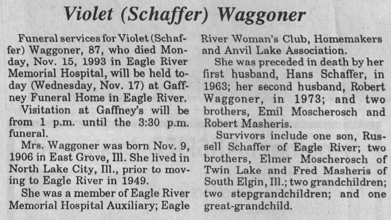 | Waggoner | Violet | 09 Nov 1906 | 15 Nov 1993 | V N-R | 17 Nov 1993 | 4 |