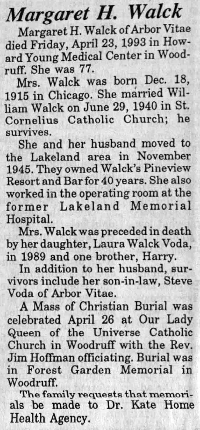 | Walck | Margaret H | 18 Dec 1915 | 23 Apr 1993 | V N-R | 05 May 1993 | 4 |