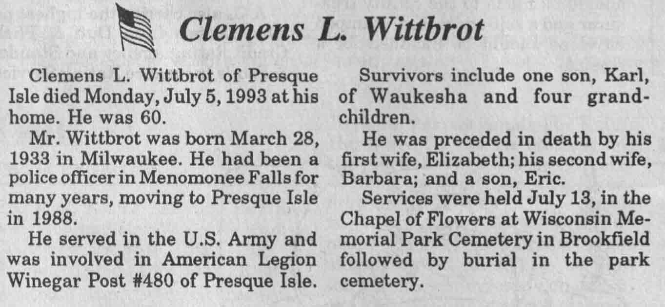 | Wittbrot | Clemens L | 28 Mar 1933 | 05 Jul 1993 | V N-R | 14 Jul 1993 | 4 |