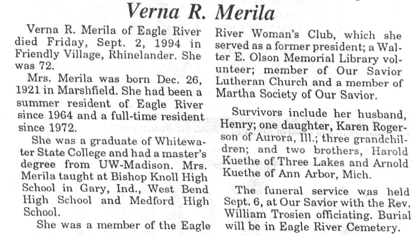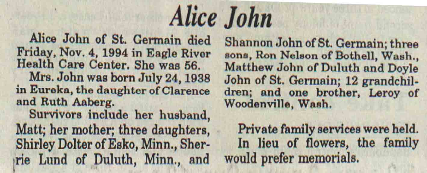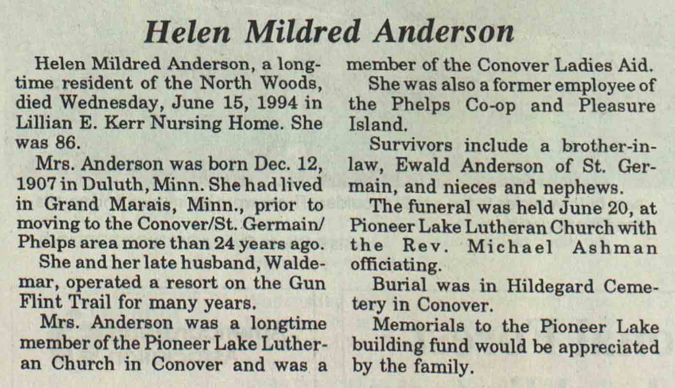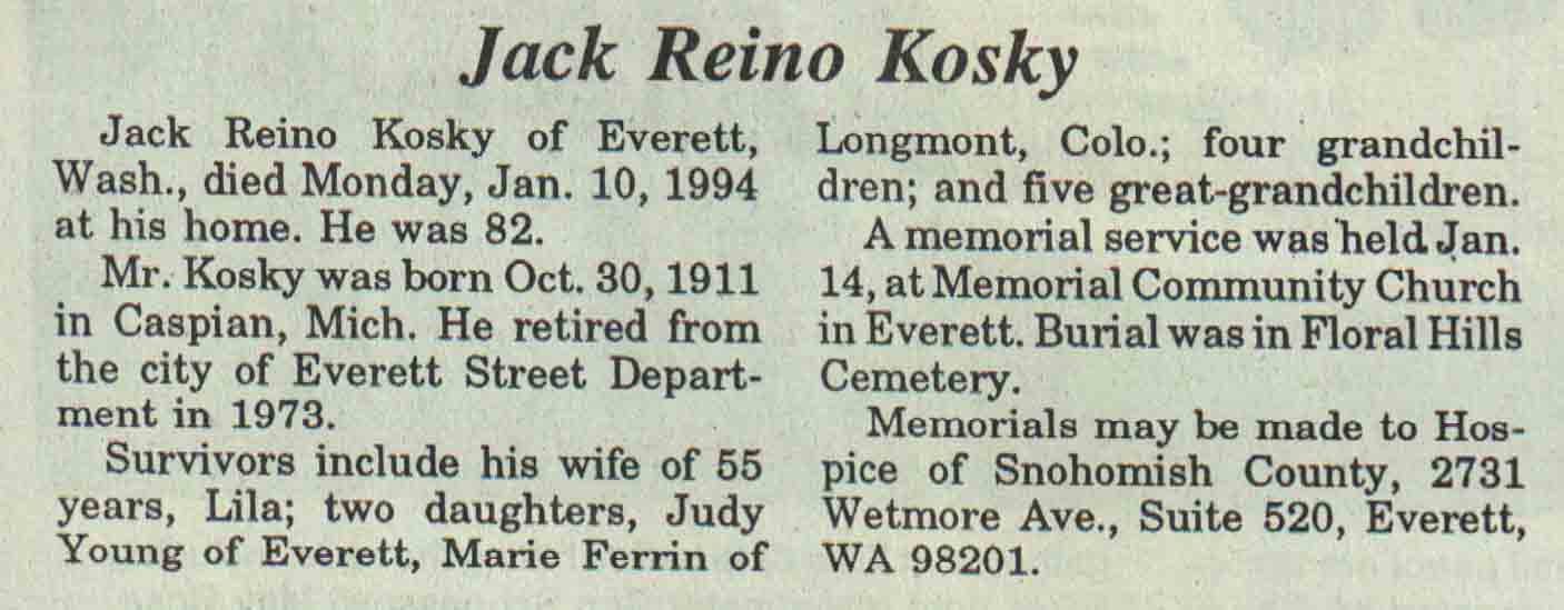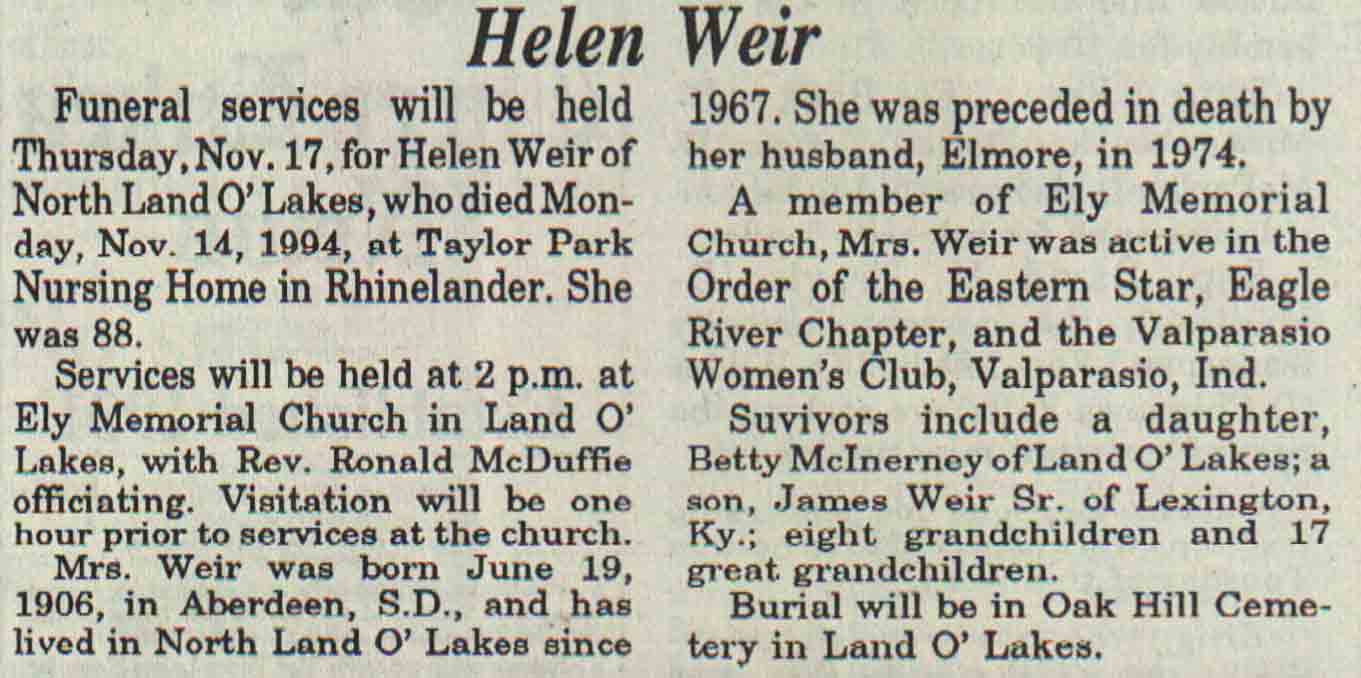 | Berg | Helen M (Koski) | 29 Oct 1907 | 25 May 1994 | V N-R | 01 Jun 1994 | 4 |