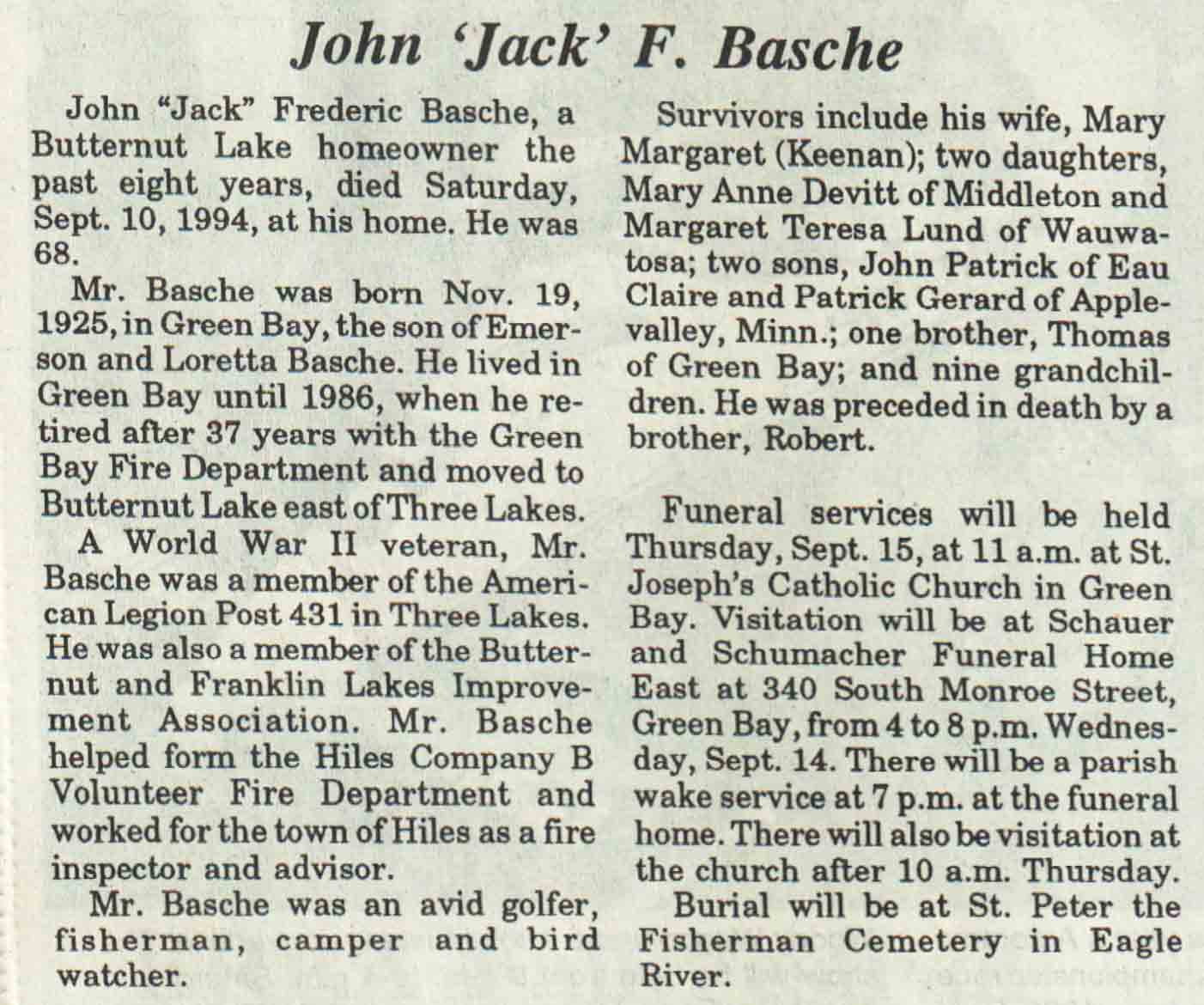 | Basche | John F 'Jack' | 19 Nov 1925 | 10 Sep 1994 | V N-R | 14 Sep 1994 | 4 |
