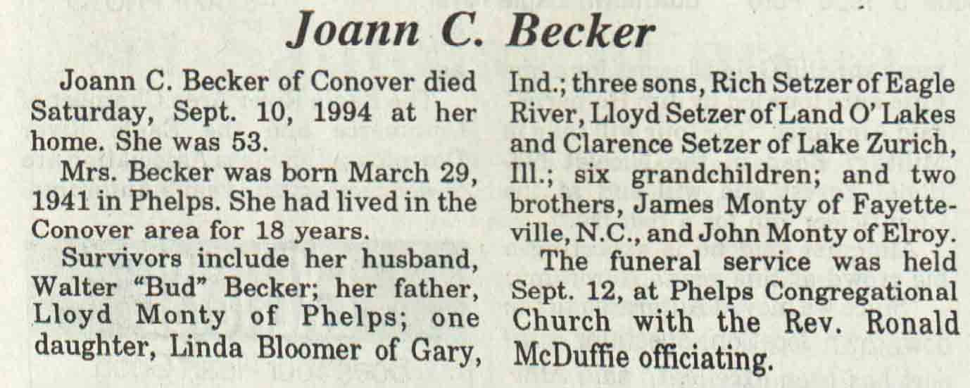 | Becker | Joann C | 29 Mar 1941 | 10 Sep 1994 | V N-R | 14 Sep 1994 | 4 |