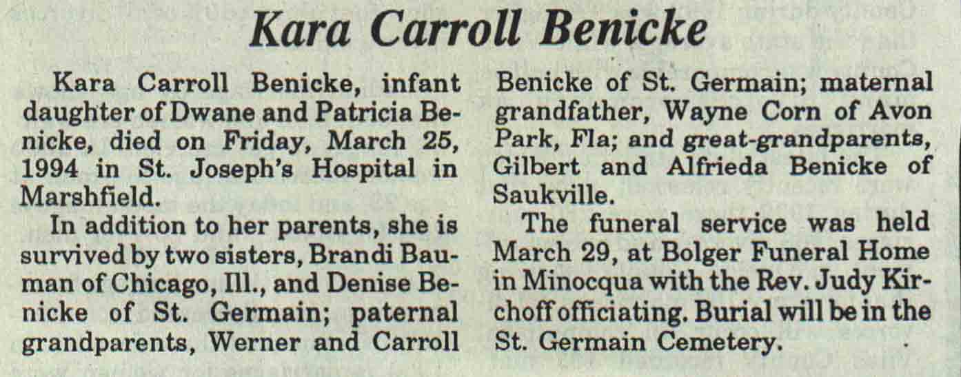 | Benicke | Kara Carroll | c 1994 | 25 Mar 1994 | V N-R | 30 Mar 1994 | 4 |