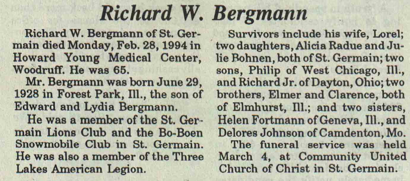 | Bergmann | Richard W | 29 Jun 1928 | 28 Feb 1994 | V N-R | 09 Mar 1994 | 4 |