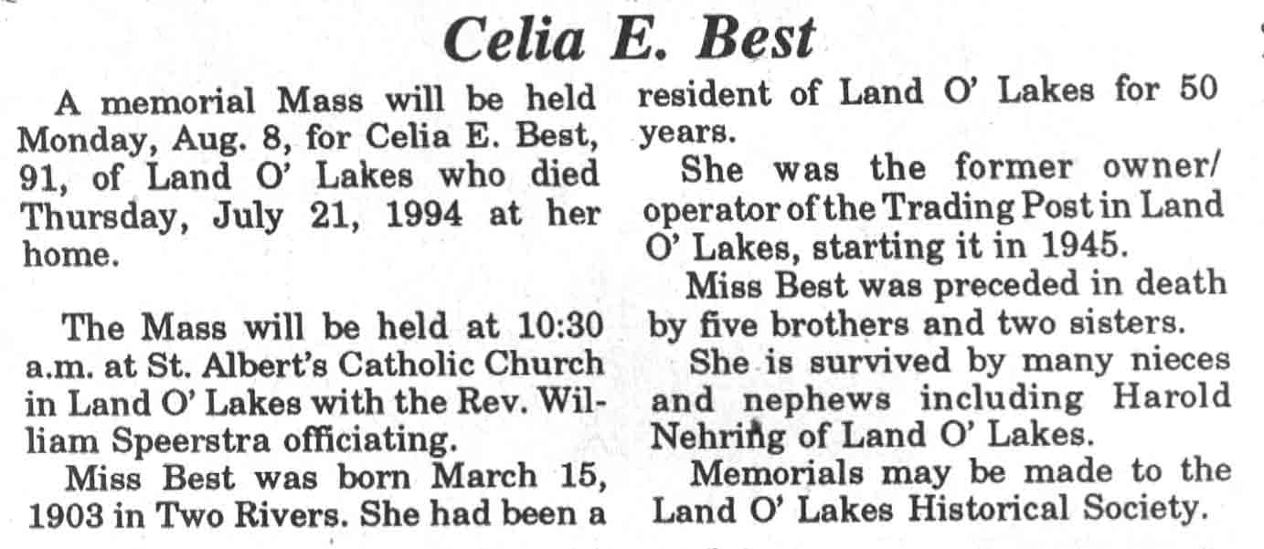 | Best | Celia E | c 1903 | 21 Jul 1994 | V N-R | 27 Jul 1994 | 4 |