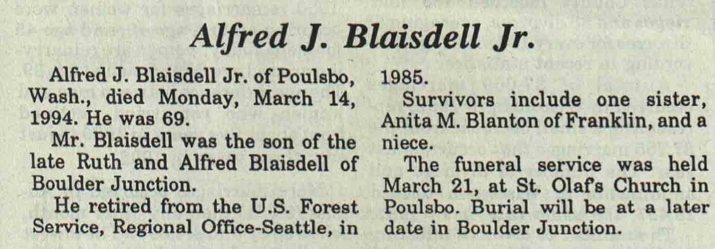 | Blaisdell | Alfred J, Jr | c 1925 | 14 Mar 1994 | V N-R | 30 Mar 1994 | 4 |