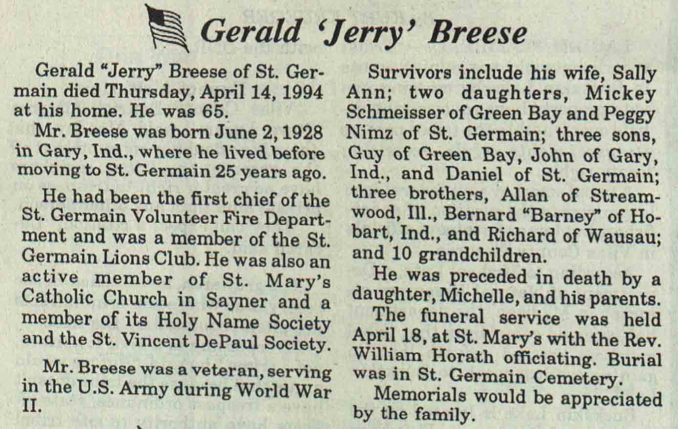 | Breese | Gerald 'Jerry' | 02 Jun 1928 | 14 Apr 1994 | V N-R | 20 Apr 1994 | 4 |