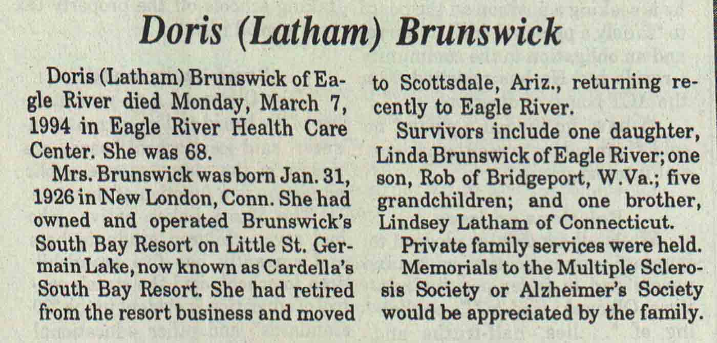 | Brunswick | Doris (Latham) | 31 Jan 1926 | 07 Mar 1994 | V N-R | 16 Mar 1994 | 4 |